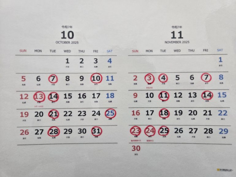 下記の赤丸が休診となります。